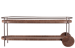 Aparador Livorno com tampos, tipo bandeja oval, em lâmina de madeira natural, lâmina pintada ou pintura laca. Estrutura em aço carbono pintado com ponteiras em latão e detalhe em recouro nas rodas.