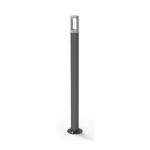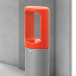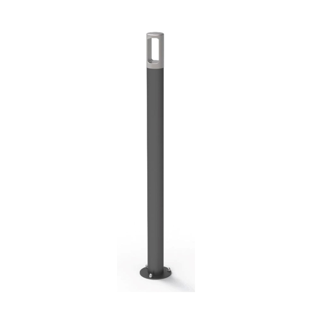 O balizador Fred tem seu design com formato circular e ponteira vazada, com a possibilidade de fixação ao pavimento através de parafusos ou chumbamento.