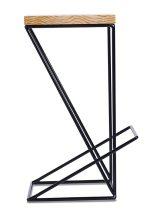 Banqueta alta em aço carbono maciço e assento em madeira.