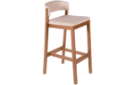 Banqueta Belle com base tingida, assento e encosto em estofado.