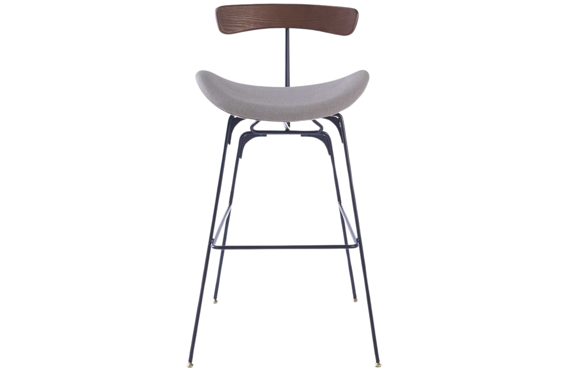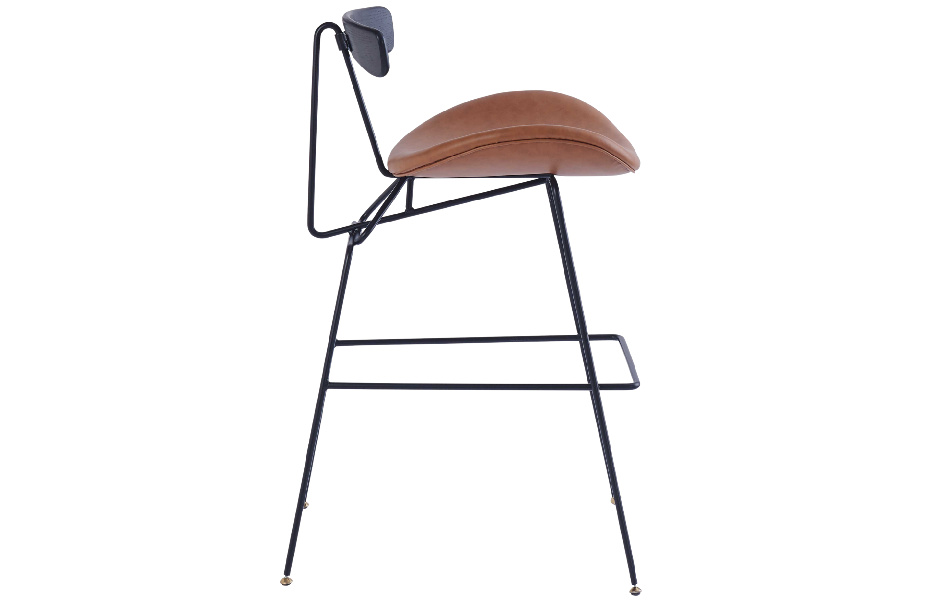 Banqueta Jive estofada em PU com base em aço pintada à pó e pés com regulagem de altura.