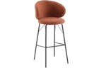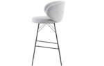 Banqueta Sahy estofada em tecido Boucle com base em aço pintado à pó.