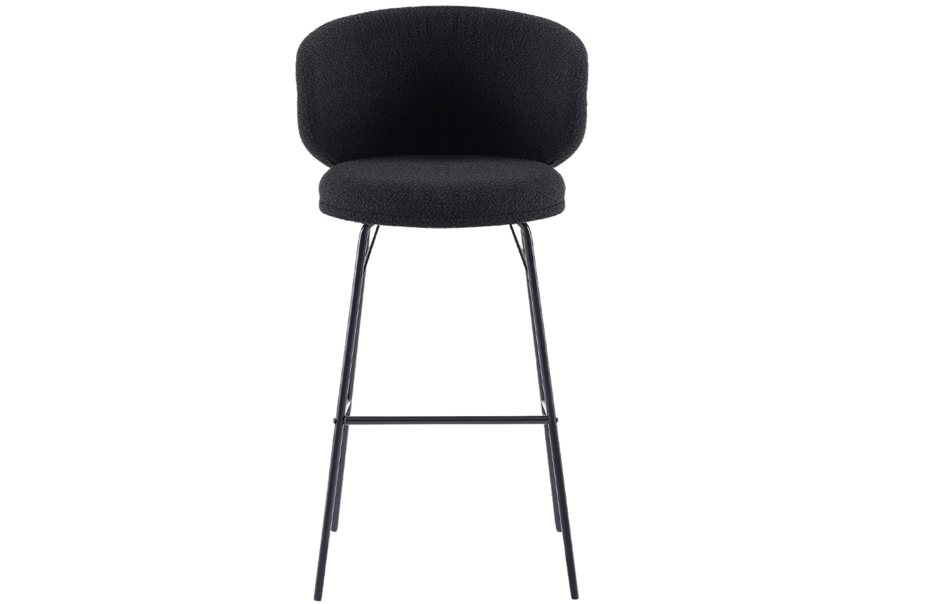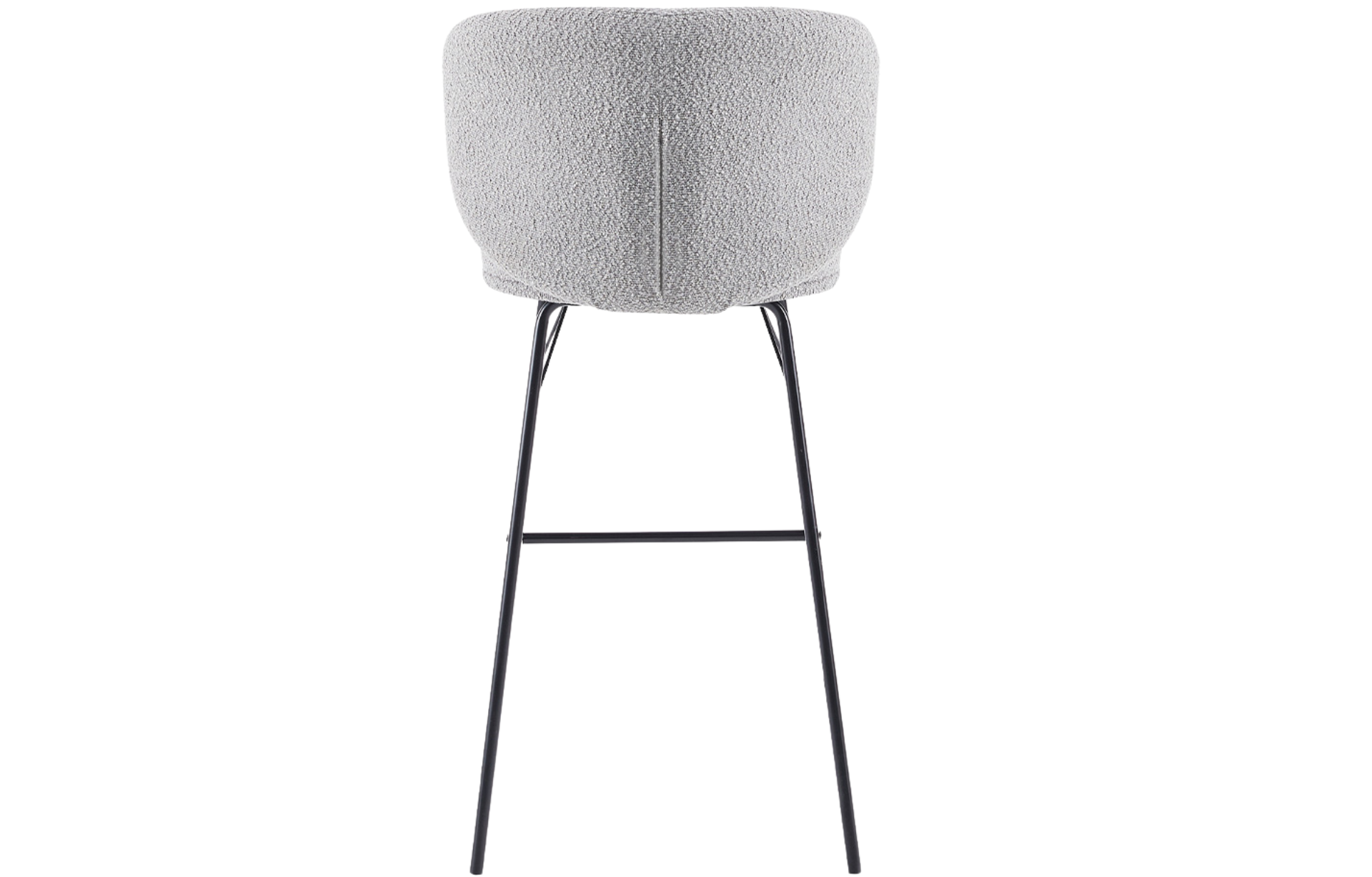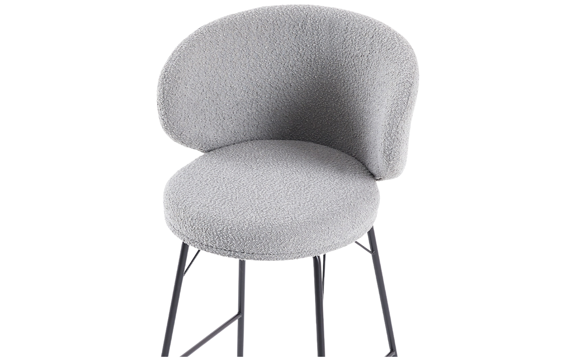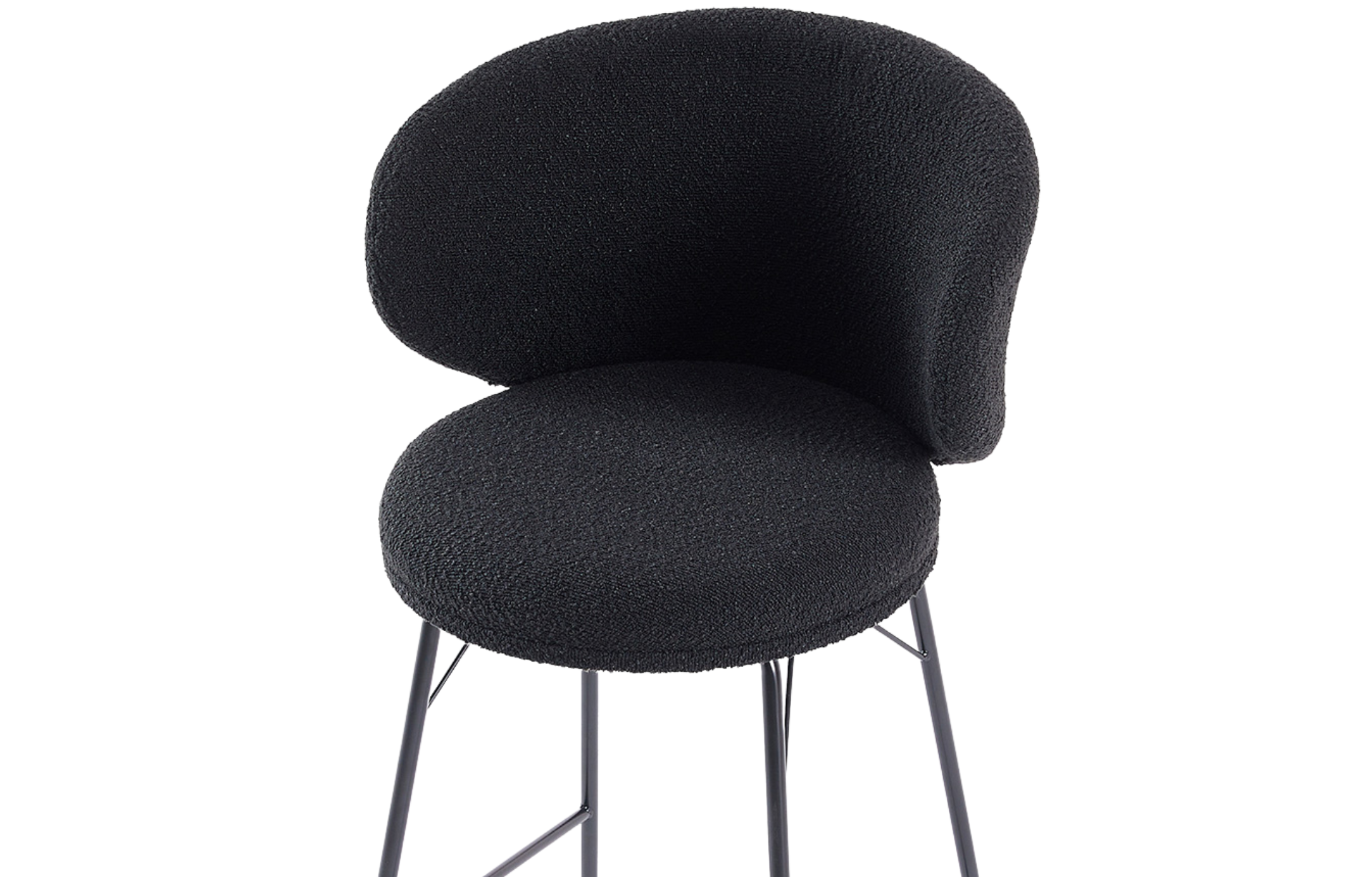 Banqueta Sahy estofada em tecido Boucle com base em aço pintado à pó.