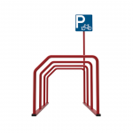 O Bicicletário Parker conta com um design de curvas retas e angulares, simples e com alta qualidade, e está disponível em diversas cores de acabamento.