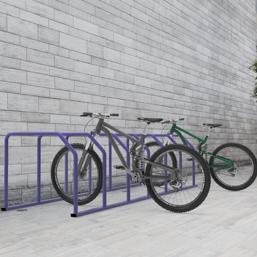 O Bicicletário Parker conta com um design de curvas retas e angulares, simples e com alta qualidade, e está disponível em diversas cores de acabamento.