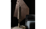 Cabideiro Camino com estrutura em aço carbono pintado e apoios em madeira natural.