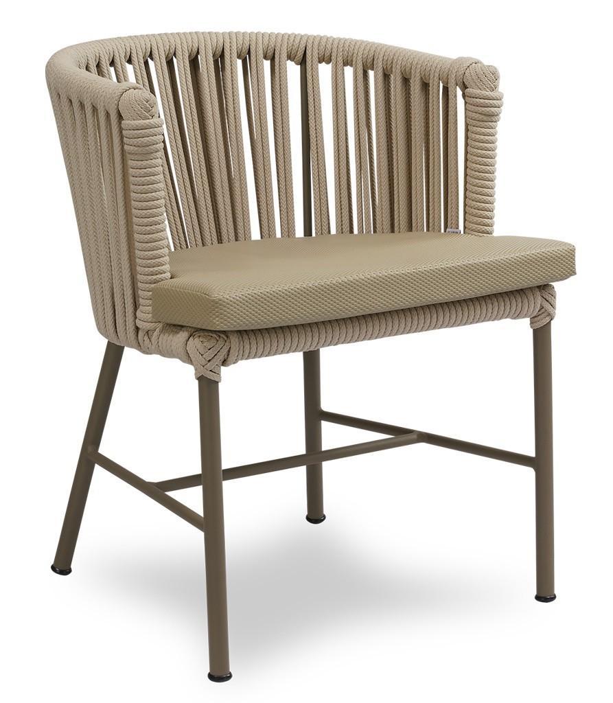 Cadeira com acabamento em alumínio, corda náutica e pintura eletrostática.