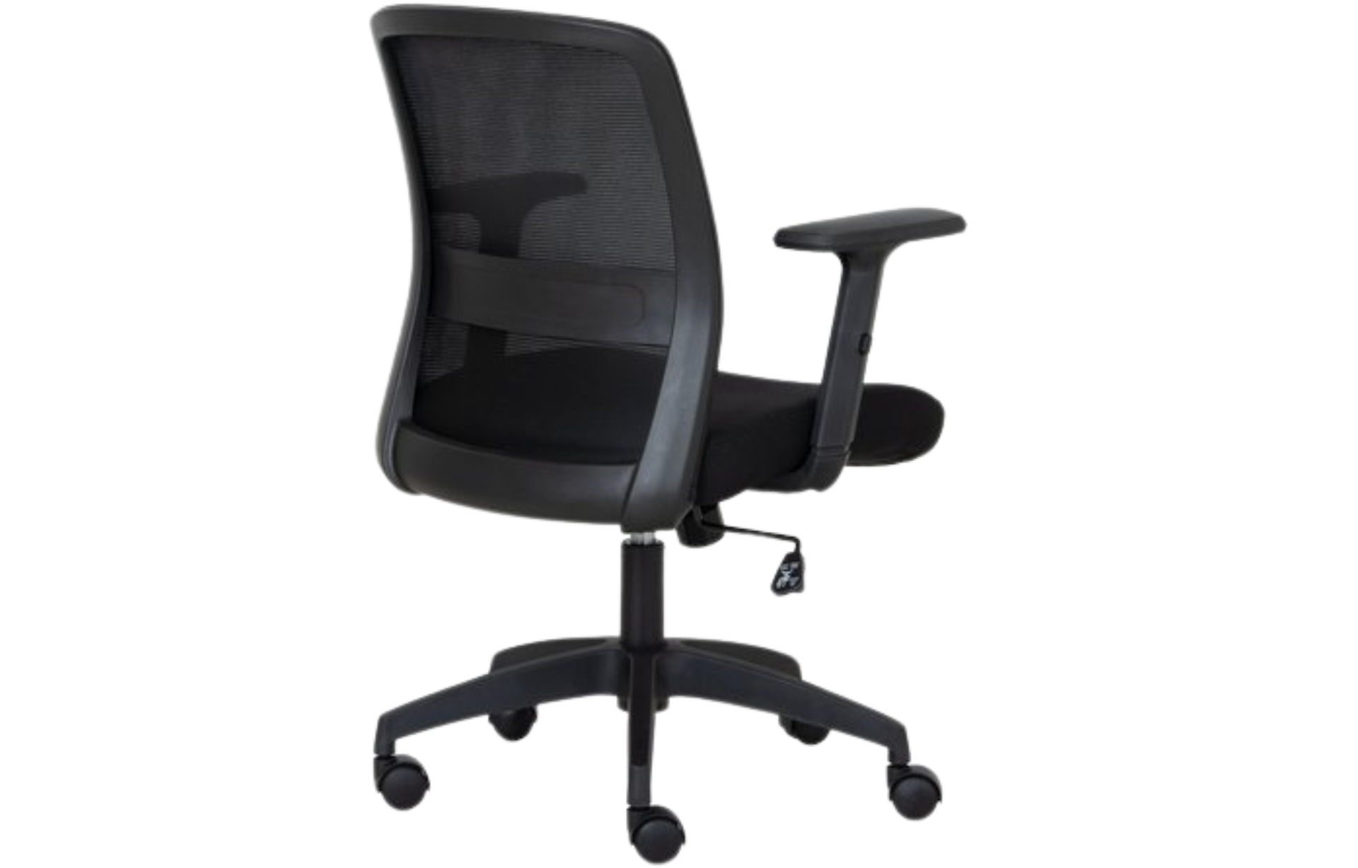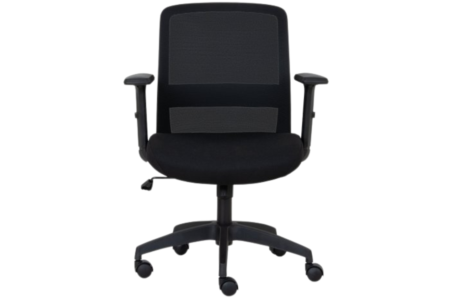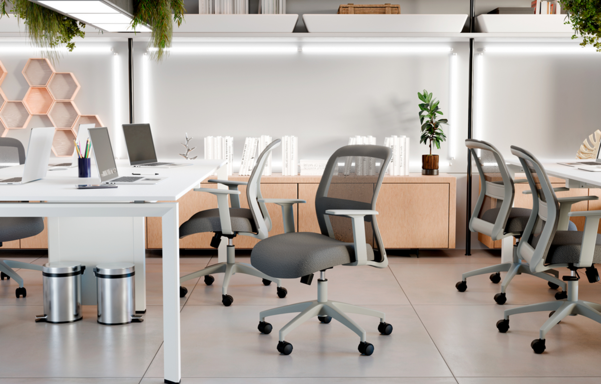 Encosto estruturado em Nylon e revestido em tela, possui apoio lombar que permite ajustes precisos. O Assento é produzido a partir de espumas de Poliuretano expandido, revestido em tecidos de polyster e tendo como estrutura, madeira de compensado anatômica, com alojamento de porca garras para fixação de braços e mecanismos. E configurada a partir de braços de regulagem, produzidos em nylon, com apoias e botão de acionamento para regulagem de altura. Mecanismo com sistema relax, com movimento de pendulo, ajuste de tenção por manipulo e trava mecânica para deixa a cadeira em posição trabalho. Sua base giratória utiliza Pistão a Gás, com acionamento de múltiplas posições de altura, além de estrela com desenho em sistema piramidal, produzida em Nylon e rodízios com duplo giro, em nylon.