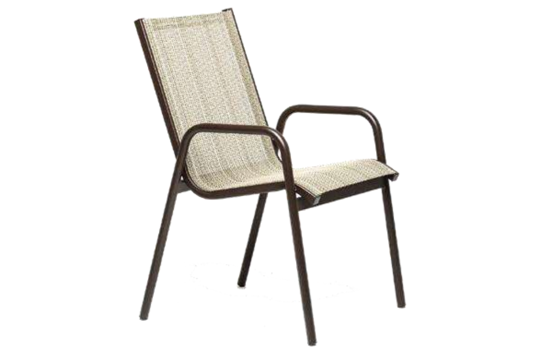 Cadeira Conchas com braços, com estrutura em Alumínio e encosto em Tela Sling.