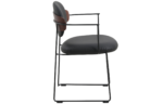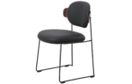 Cadeira Downtown, estofada em poliuretano ou tecido com detalhe de madeira multilaminada no encosto. Base em aço pintado à pó.