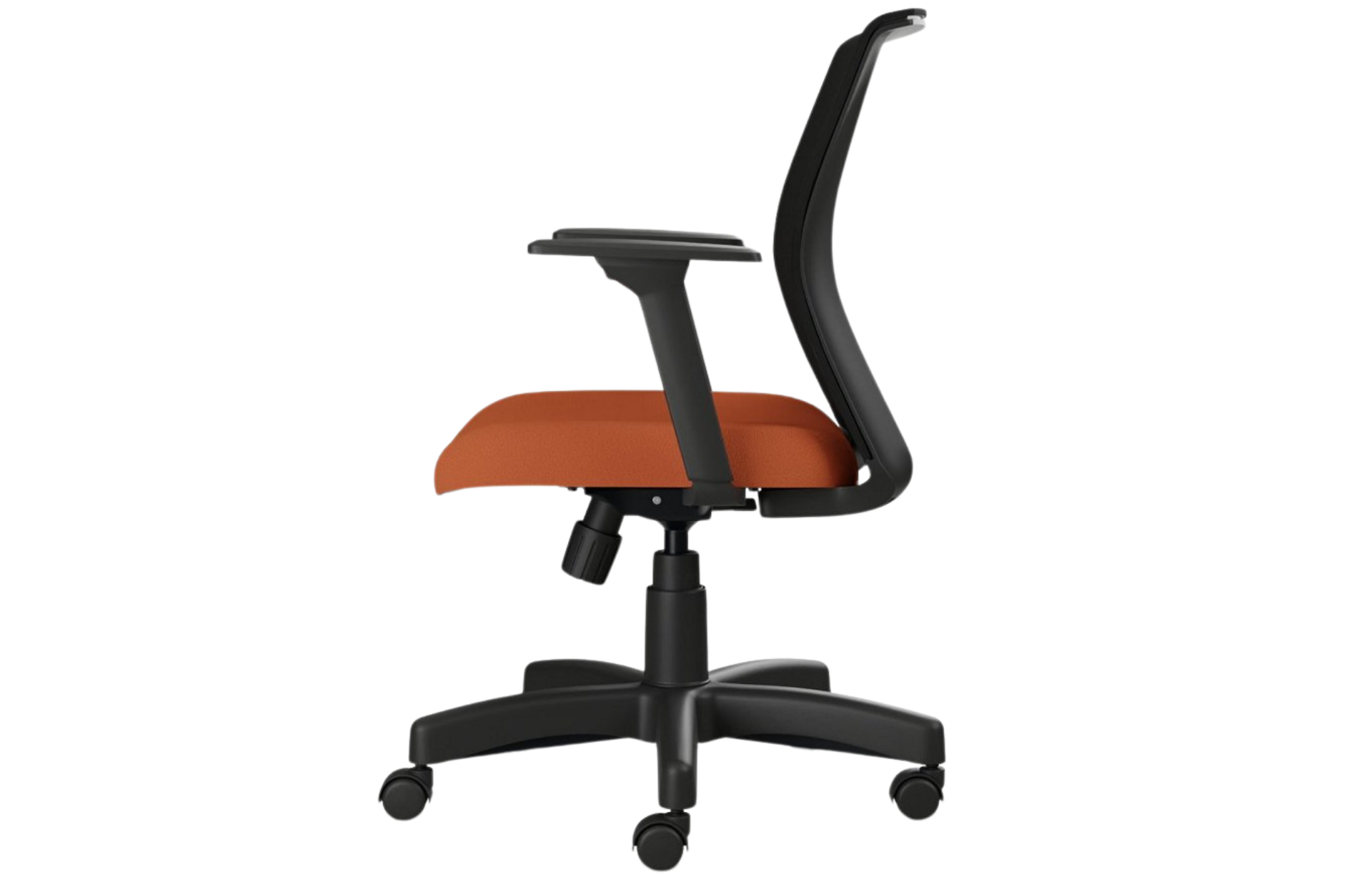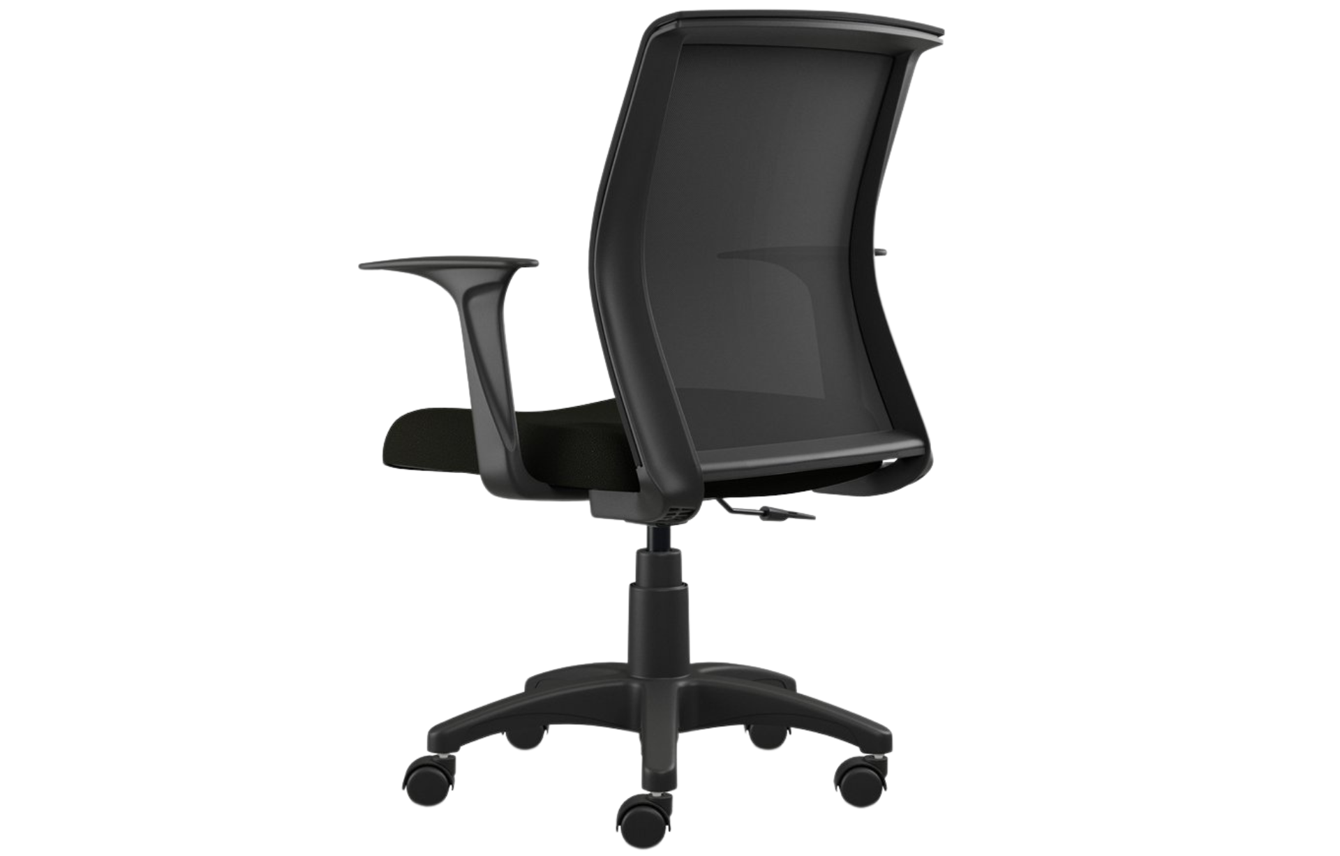 Encosto em tela dublada, permite maior durabilidade pois é feita por processo vulcanizado, tornando o tecido e a tela uma peça unica, fixada a um estrutural produzido em polímero injetado de alta resistência.
