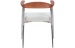 Cadeira Gomez estofa em tecido com espaldar em Madeira de Freixo e Base em Aço Inoxidável.
