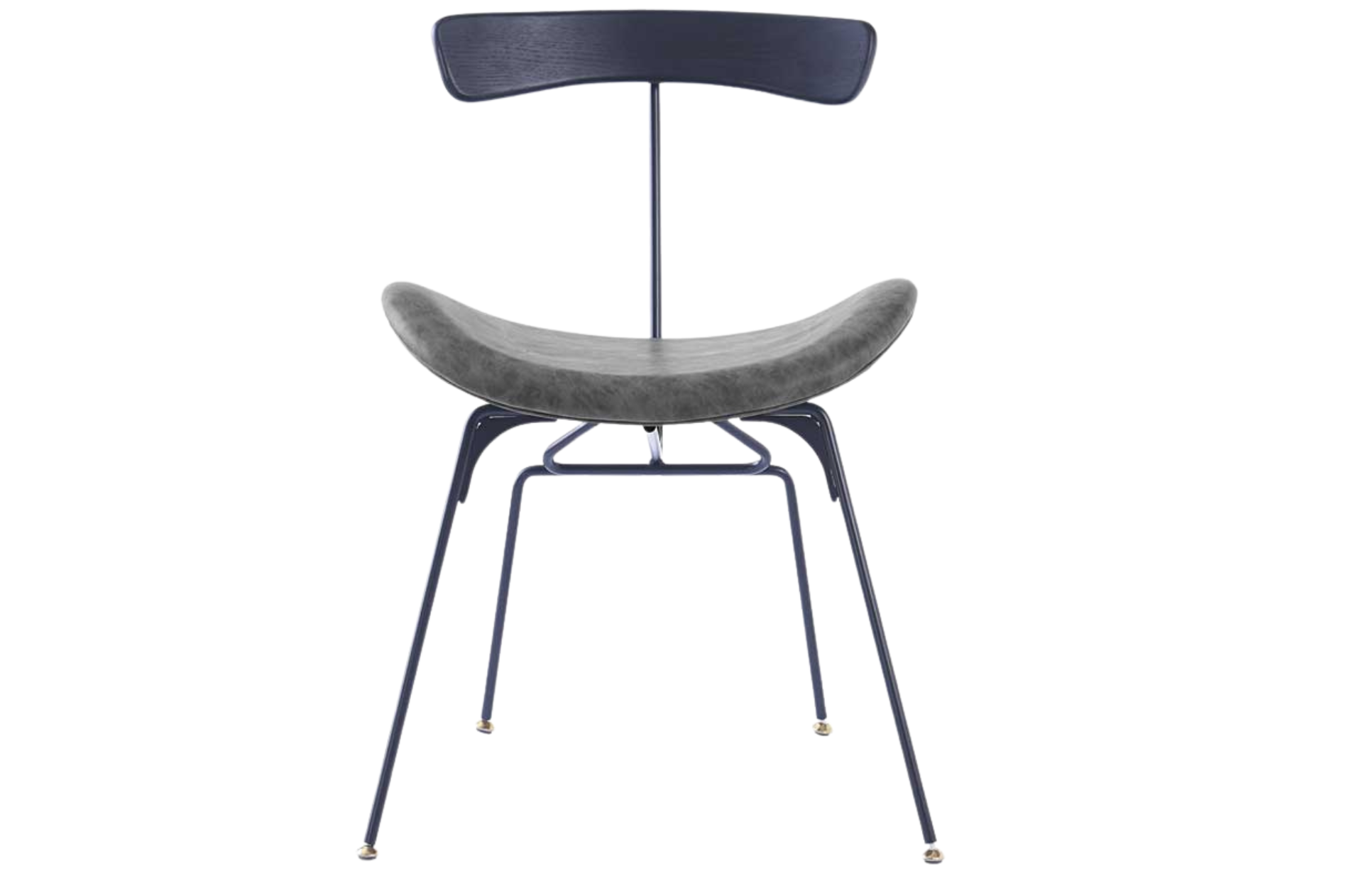 Cadeira Jive com assento revestido em PU, encosto em madeira e base em Aço Pintada a pó.