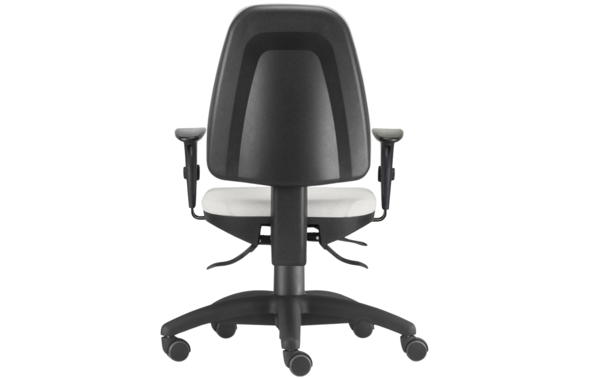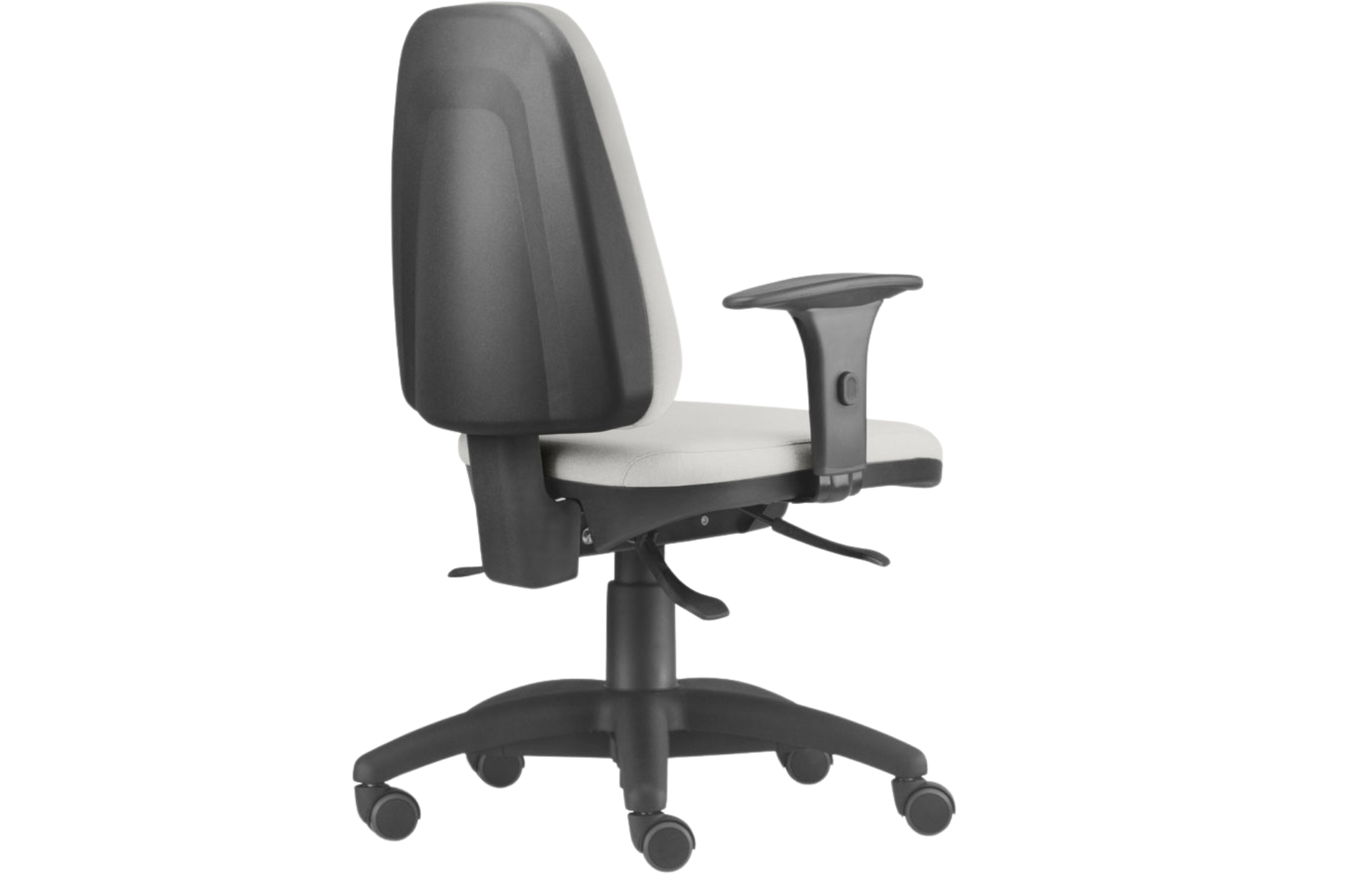 Evolution (contato permanente), ajuste de altura e inclinação do encosto, ajuste de altura do assento. possuí capa para acabamento que permite o encaixe à capa do encosto.