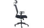 Encosto em tela que permite maior durabilidade e conforto. A tela é fixada a uma estrutura produzida em polímero injetado de alta resistência formando o frame do encosto. Completa o sistema do encosto o apoio (descaço) de cabeça, produzido em Nylon e acabamento em tela com sistema de ajuste de altura e inclinação. O encosto também possui como acessório o apoio lombar, que permite ao usuário adaptar-se com conforto ao encosto. O Assento é produzido com espuma em poliuretano com espessura de 40 mm, estruturada em madeira compensada e anatômica de 14mm. Possui braço com regulagem de altura, totalmente injetado em polímero de alta resistência e apoias em Pu (poliuretano), trazendo total conforto térmico e de toque ao usuário. O Mecanismo ergonômico com sistema de pêndulo relax, permite a inclinação do assento para melhor adequar ao biótipo do usuário com travamento em qualquer ponto. Completa o sistema de base giratória a utilização de Pistão a Gás, com acionamento de múltiplas paradas, estrela com desenho em sistema piramidal, produzida em Nylon e rodízios com duplo giro, em nylon.