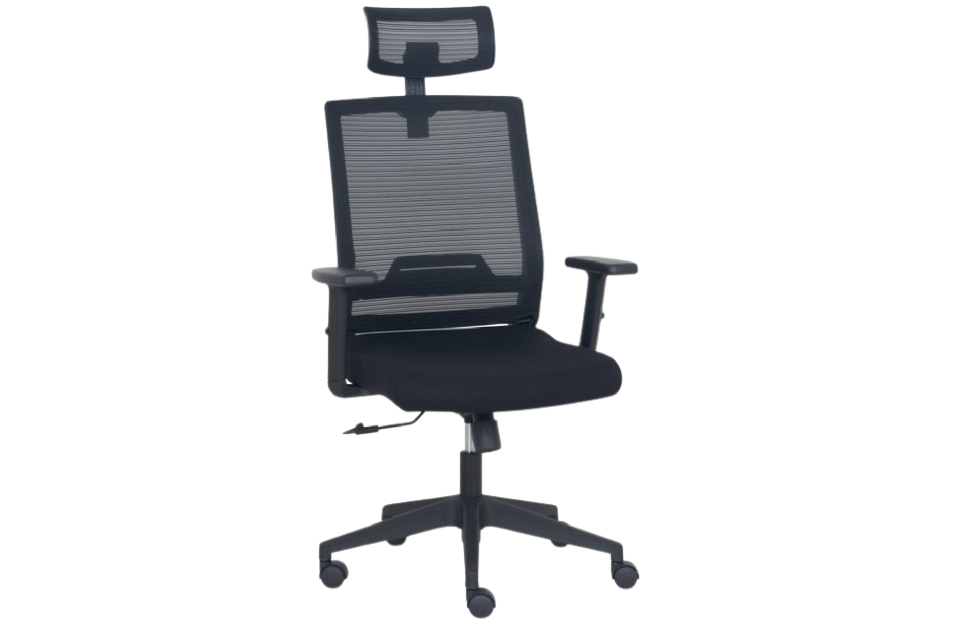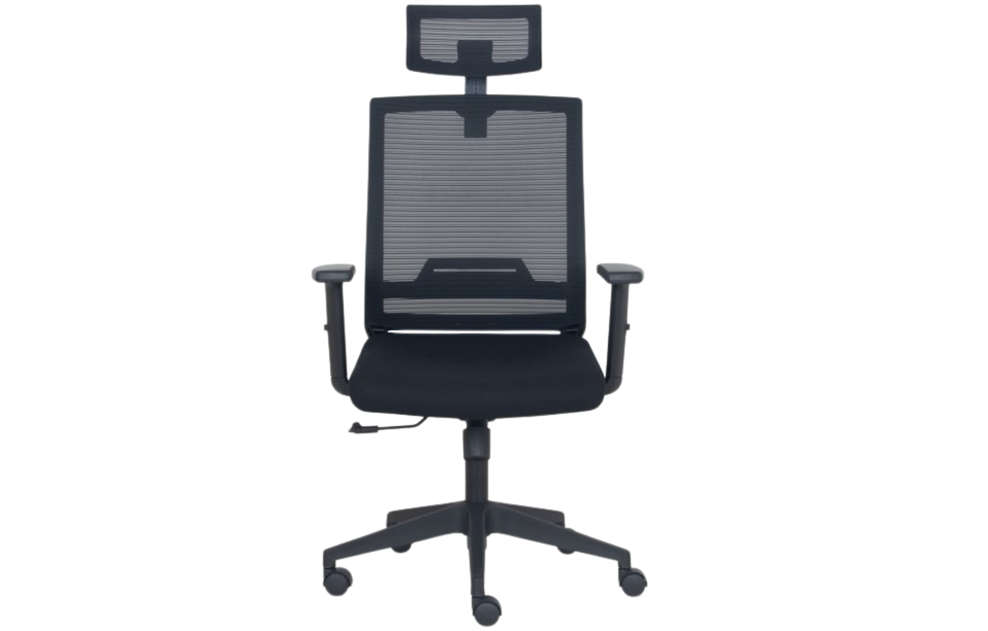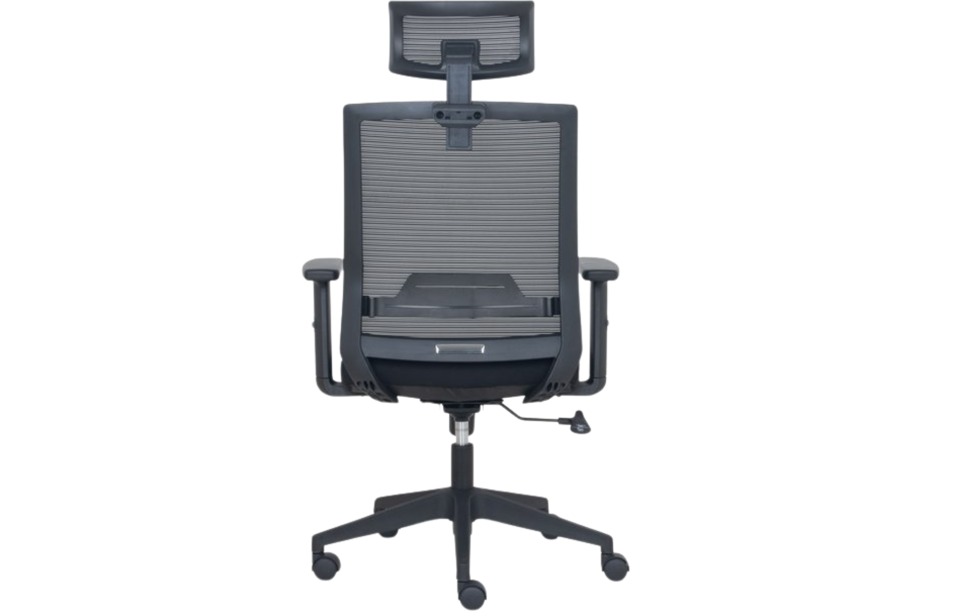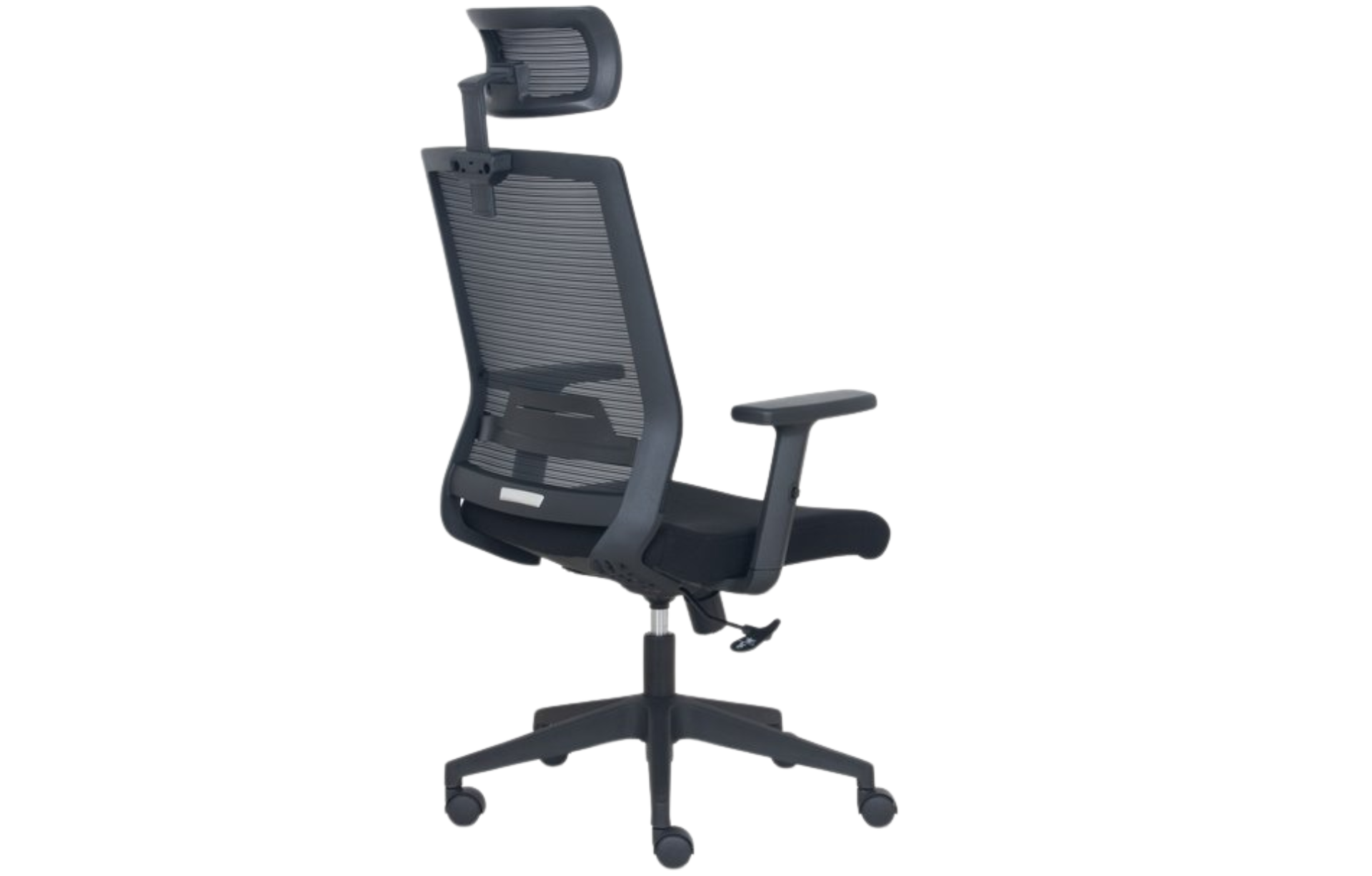 Encosto em tela que permite maior durabilidade e conforto. A tela é fixada a uma estrutura produzida em polímero injetado de alta resistência formando o frame do encosto. Completa o sistema do encosto o apoio (descaço) de cabeça, produzido em Nylon e acabamento em tela com sistema de ajuste de altura e inclinação. O encosto também possui como acessório o apoio lombar, que permite ao usuário adaptar-se com conforto ao encosto. O Assento é produzido com espuma em poliuretano com espessura de 40 mm, estruturada em madeira compensada e anatômica de 14mm. Possui braço com regulagem de altura, totalmente injetado em polímero de alta resistência e apoias em Pu (poliuretano), trazendo total conforto térmico e de toque ao usuário. O Mecanismo ergonômico com sistema de pêndulo relax, permite a inclinação do assento para melhor adequar ao biótipo do usuário com travamento em qualquer ponto. Completa o sistema de base giratória a utilização de Pistão a Gás, com acionamento de múltiplas paradas, estrela com desenho em sistema piramidal, produzida em Nylon e rodízios com duplo giro, em nylon.