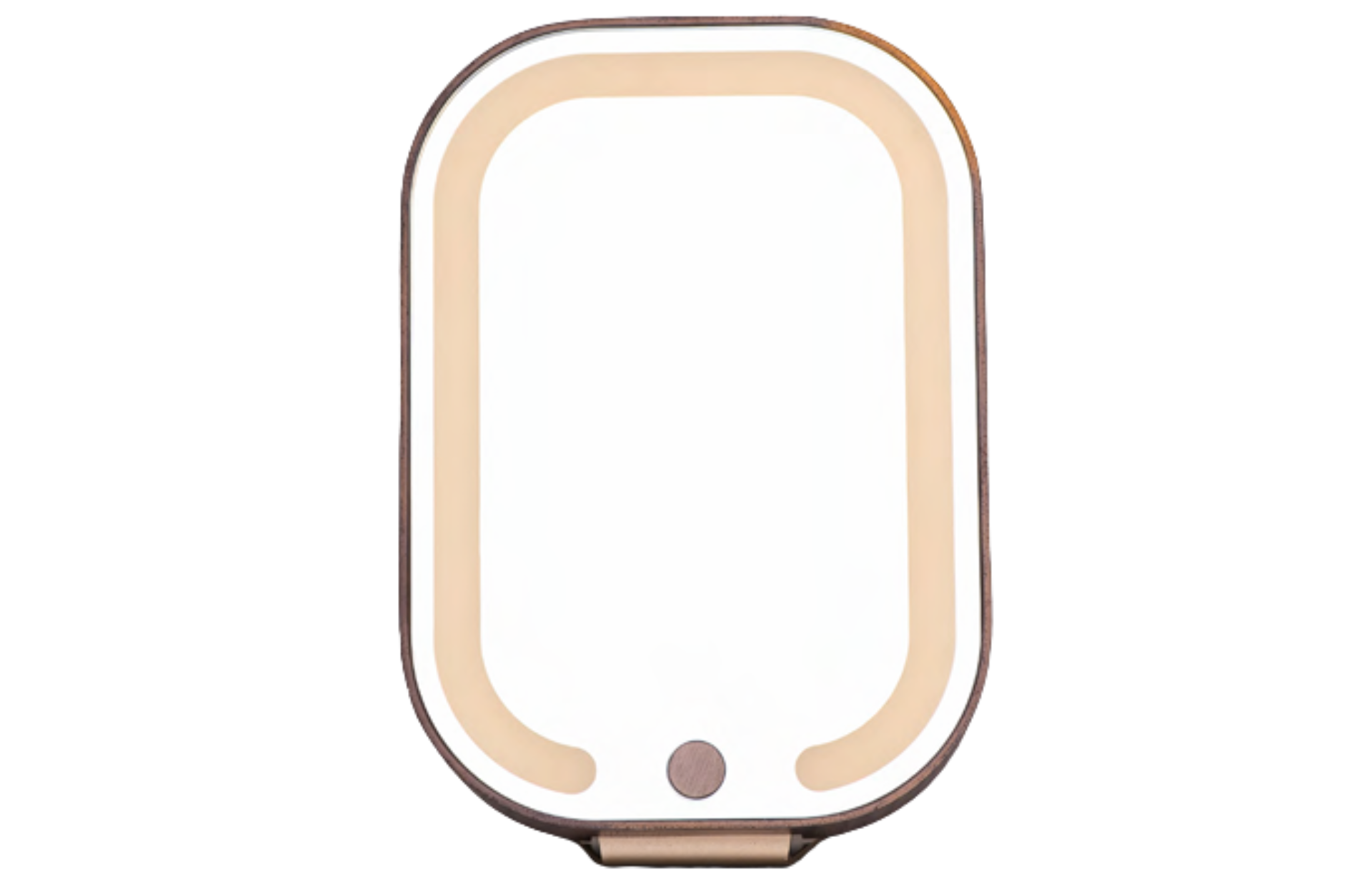 Espelho Saturna redondo com moldura revestida em lâmina de madeira natural, trazendo sofisticação para qualquer ambiente.