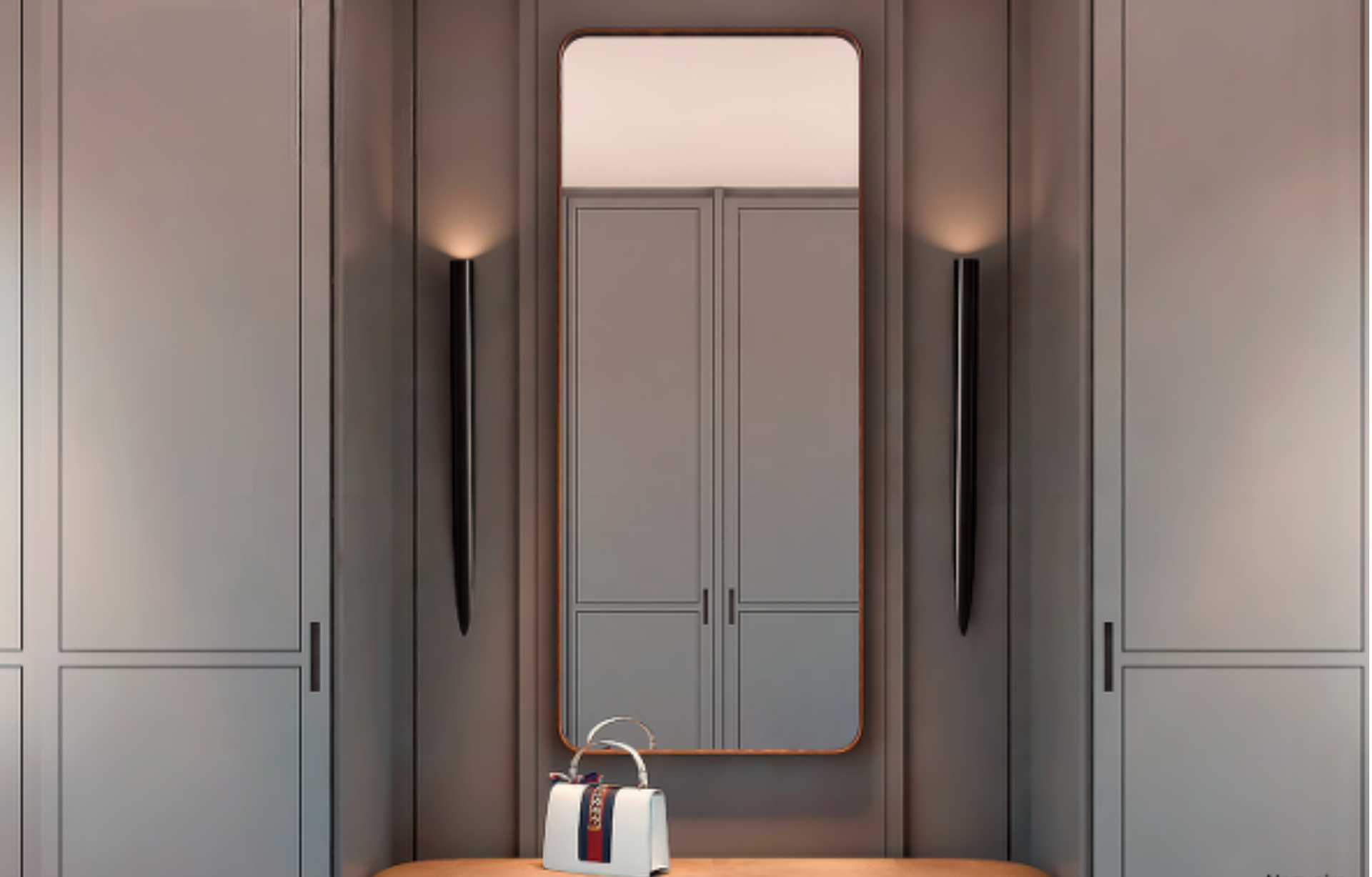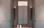 Espelho Terra com moldura disponível, em pintura ou lâmina natural, unindo versatilidade e elegância.