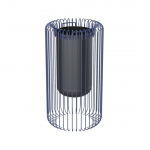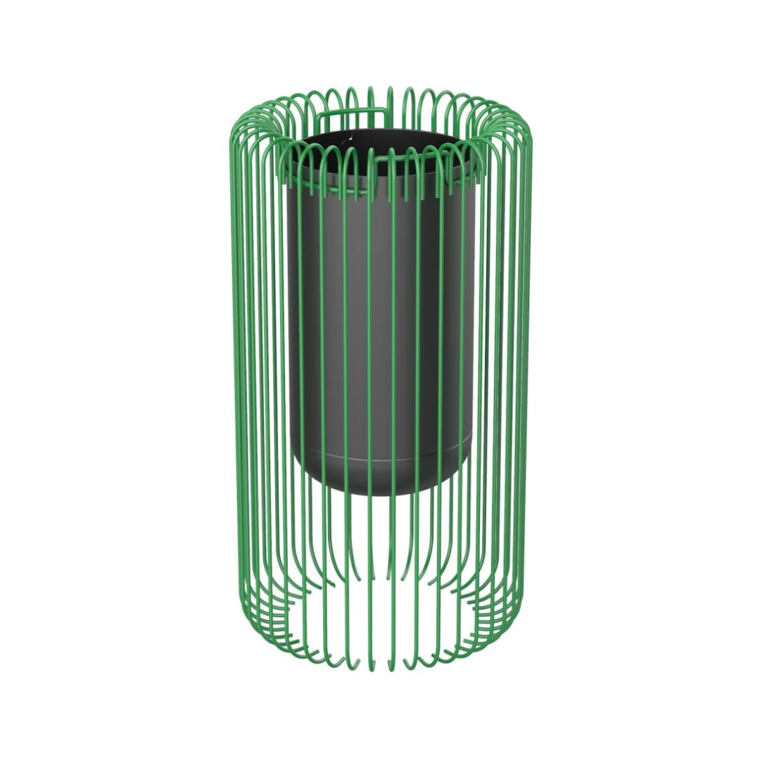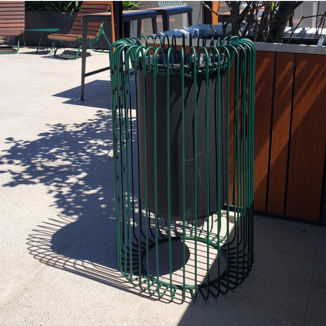 Estrutura em aço trefilado e cesto em aço carbono pintado, com pintura eletrostática em epóxi‐pó, em pré‐tratamento anti-ferruginoso (fosfatizado).