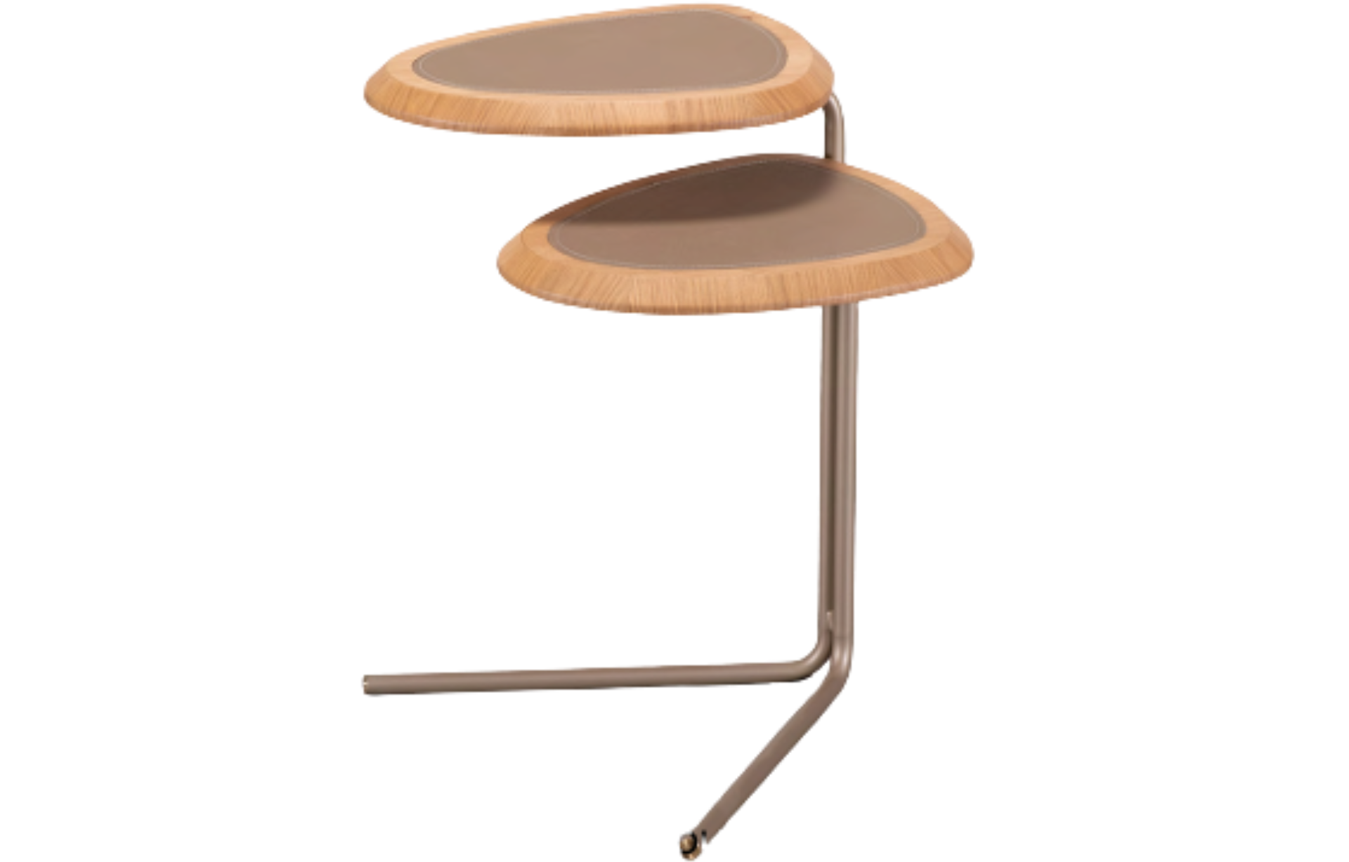 Mesa de Apoio Modula com opção de tampo simples ou duo, com borda laminada ou em laca e fundo em recouro. Estrutura em aço carbono pintado.