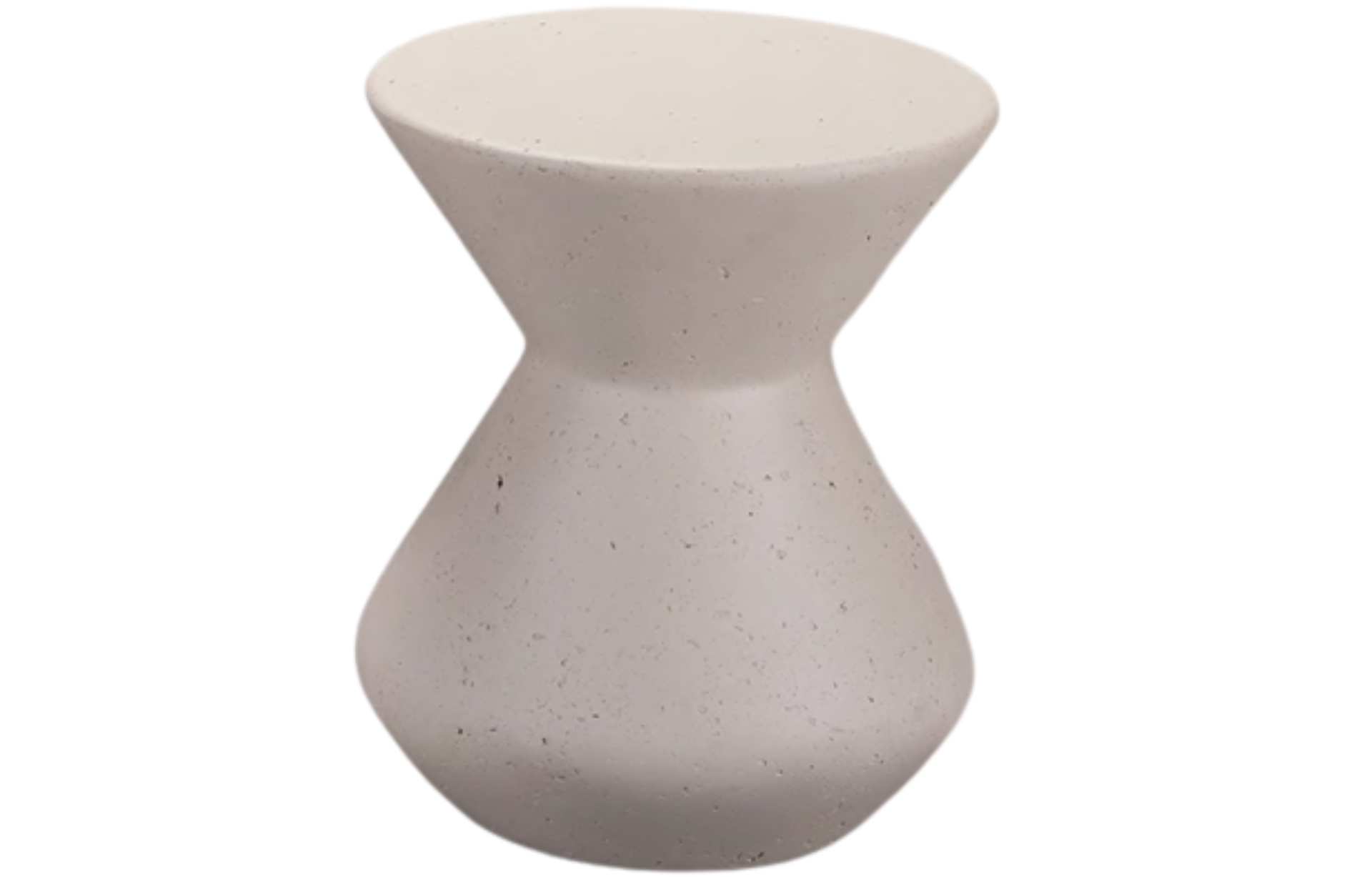 Mesa de Apoio Ponce em cimento tecnológico, disponível nas opções de acabamento natural (Concreto ou café).