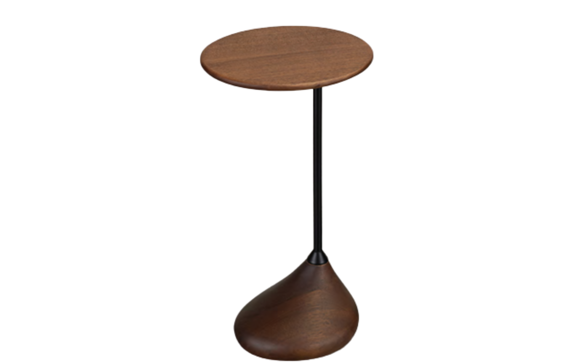Mesa de Apoio Strata com tampo e base em madeira maciça nas opções natural, castanho ou ébano, ou cimento tcnológico, disponível em acabamento natural (concreto ou café). Haste em latão ou pintada.
