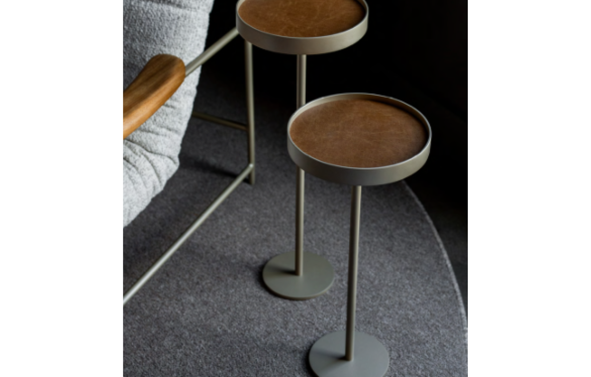 Mesa de Apoio TK com bandeja em MDF laqueado ou aplique de recouro, e estrutura em aço carbono pintado. Bordas da bandeja e estrutura combinando na mesma cor.