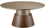 Mesa de Jantar Gam redonda com tampo em BP, laminado ou vidro pintado. Base em acabamento laminado ou laca. Base superior (liga o tampo a base) sempre em laca.