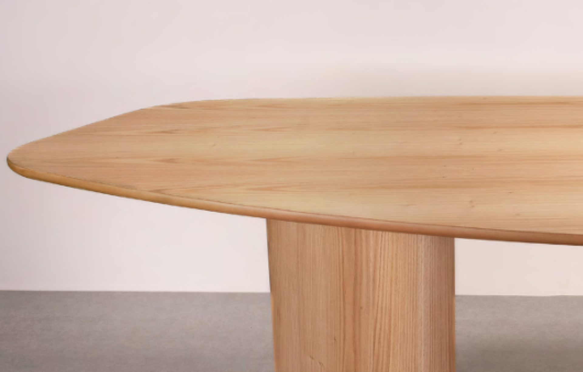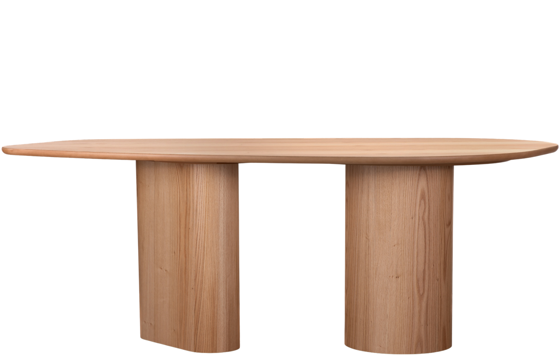 Mesa de Jantar Opereta com tampo orgânico em BP, laminado ou vidro pintado. Base disponível em acabamento laminado ou laca.