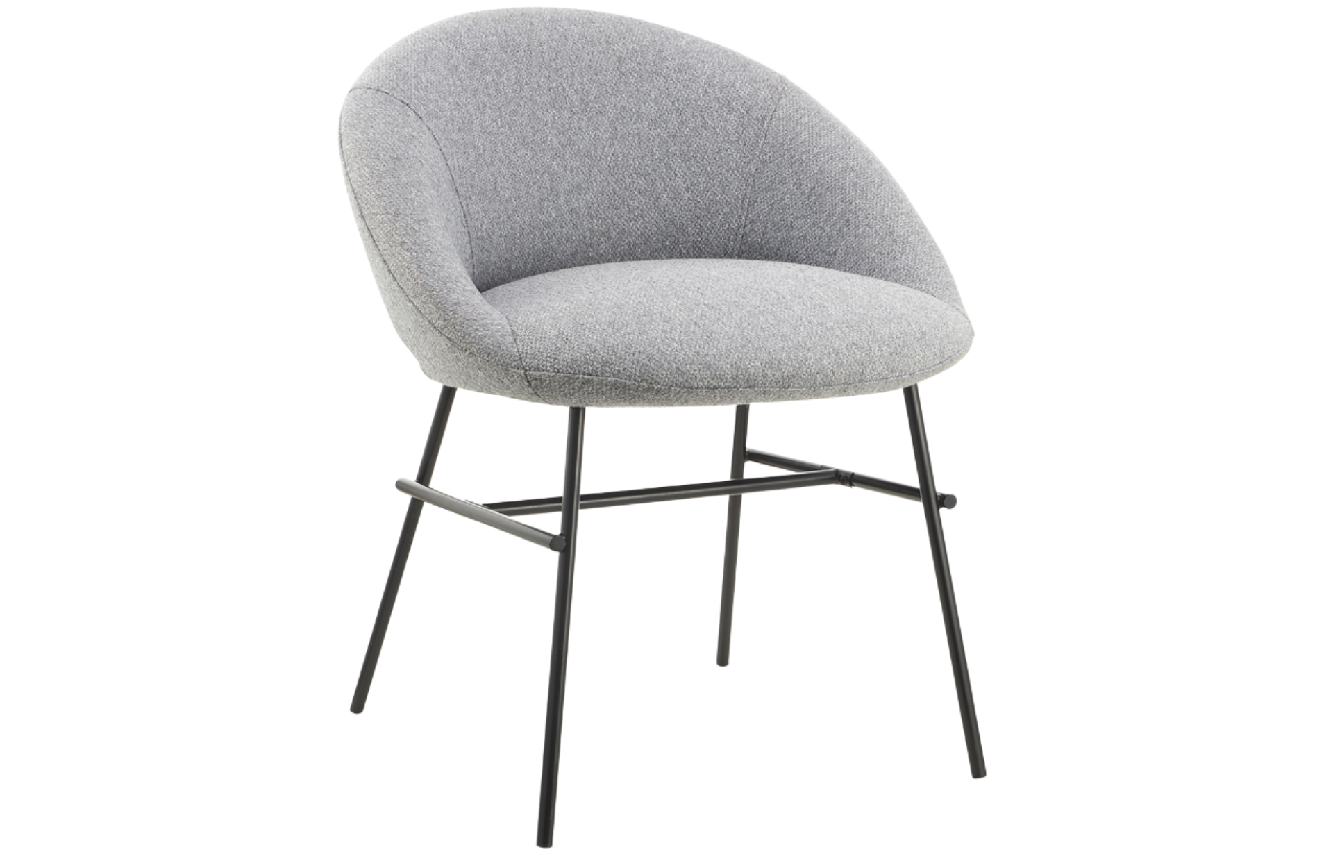 Poltrona Barbosa com assento e encosto estofado e pernas em metal.