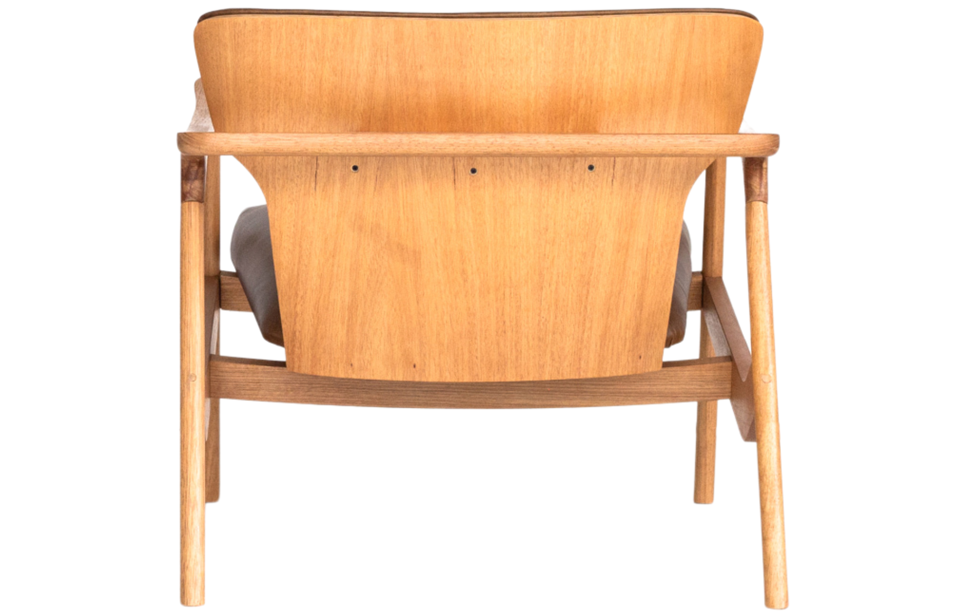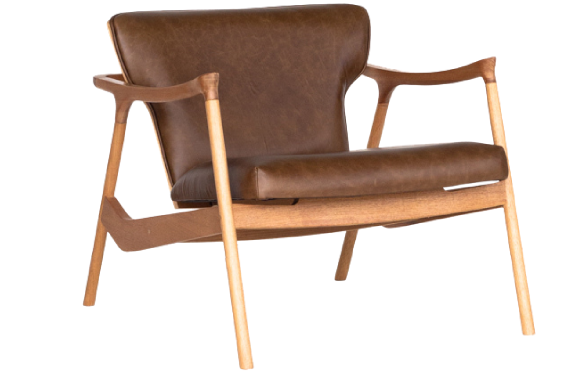 Poltrona Barry com design de linhas fluidas e orgânicas, possui estrutura em madeira maciça. O assento e encosto estofados em couro conferem um ar de sofisticação e conforto. A peça é ideal para compor salas de estar, escritórios ou ambientes de leitura com um toque moderno.