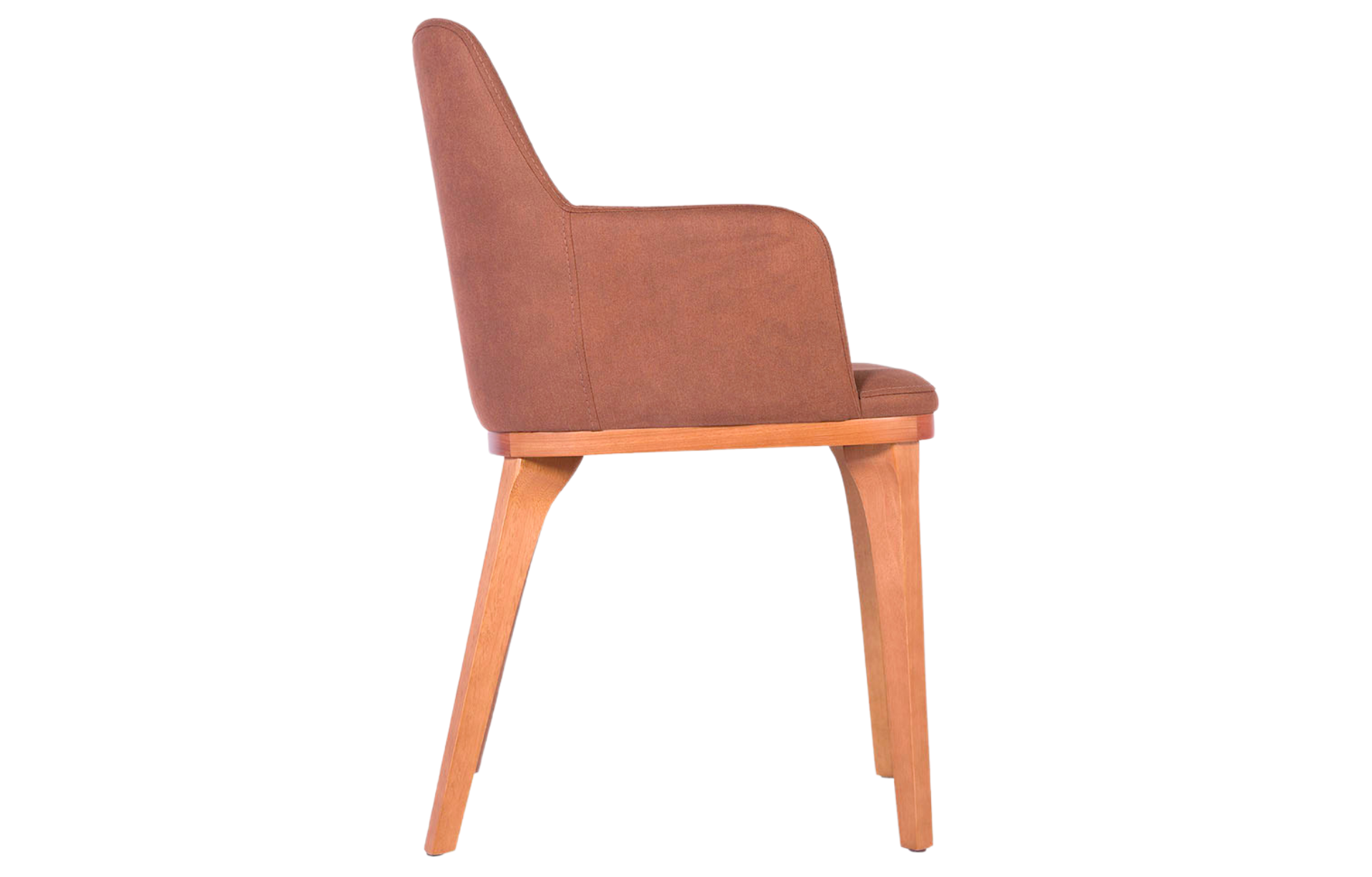 Poltrona Mia II com pés tingidos e estofamento para encosto e assento.