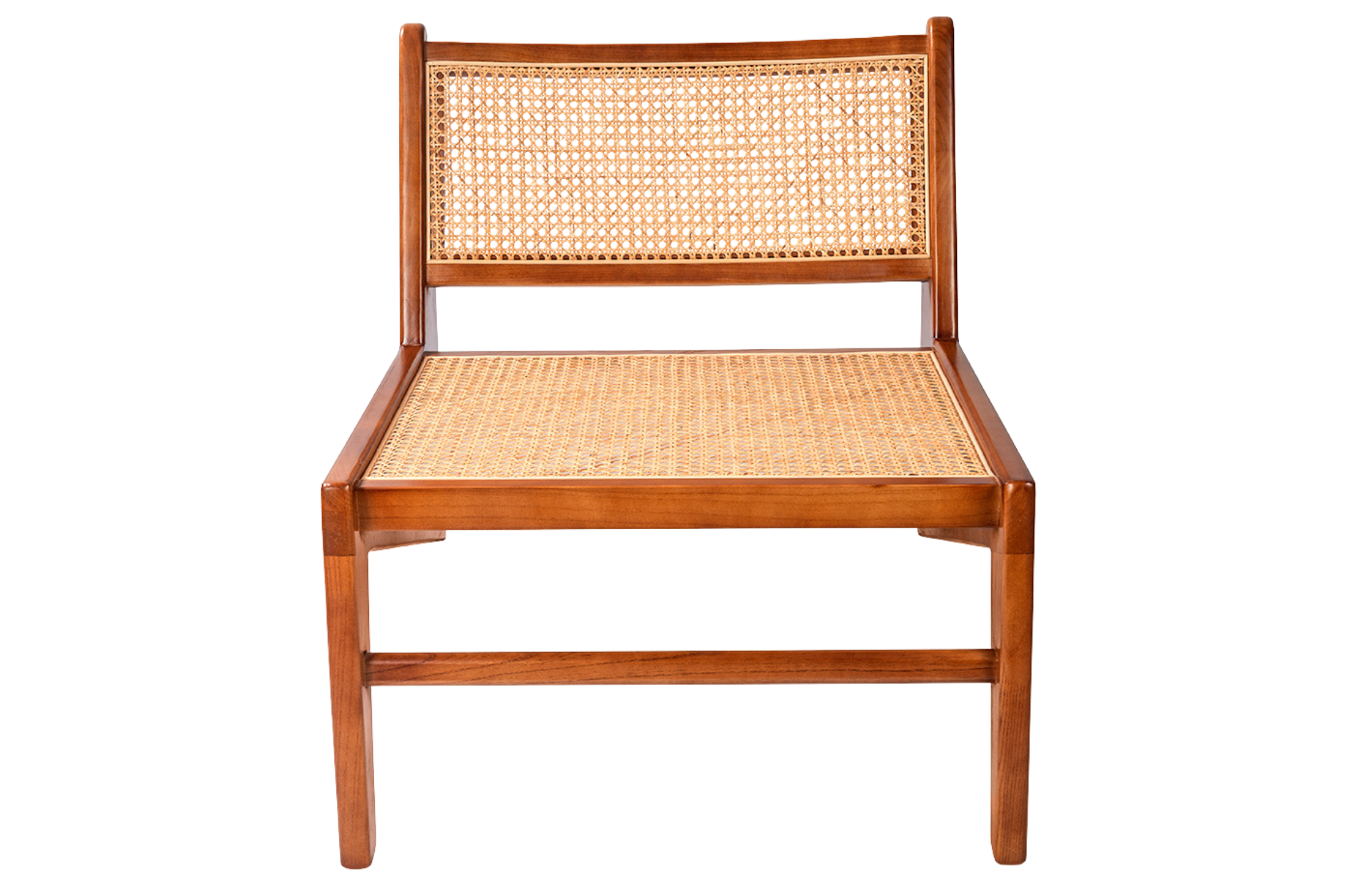 Poltrona Parvati em madeira com assento e encosto em Rattan Natural.