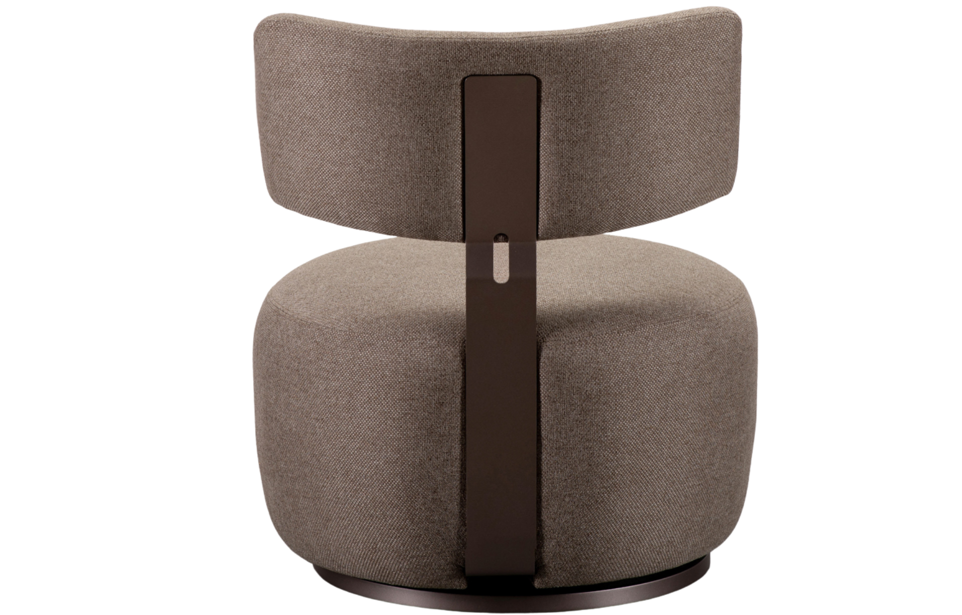 Poltrona Ronny com Assento redondo e encosto estofado, com base giratória. Altura do chão ao assento: 41cm.