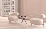 Poltrona Sweet revestida em tecido com base em Aço Pintado à Pó.