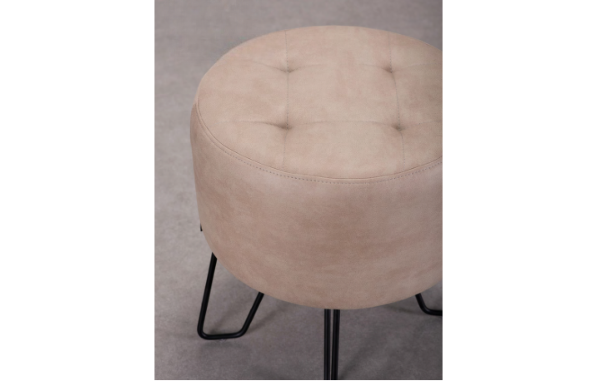 Puff Flowers estofado com detalhe em costura no assento, base em aço carbono pintado e espuma D26