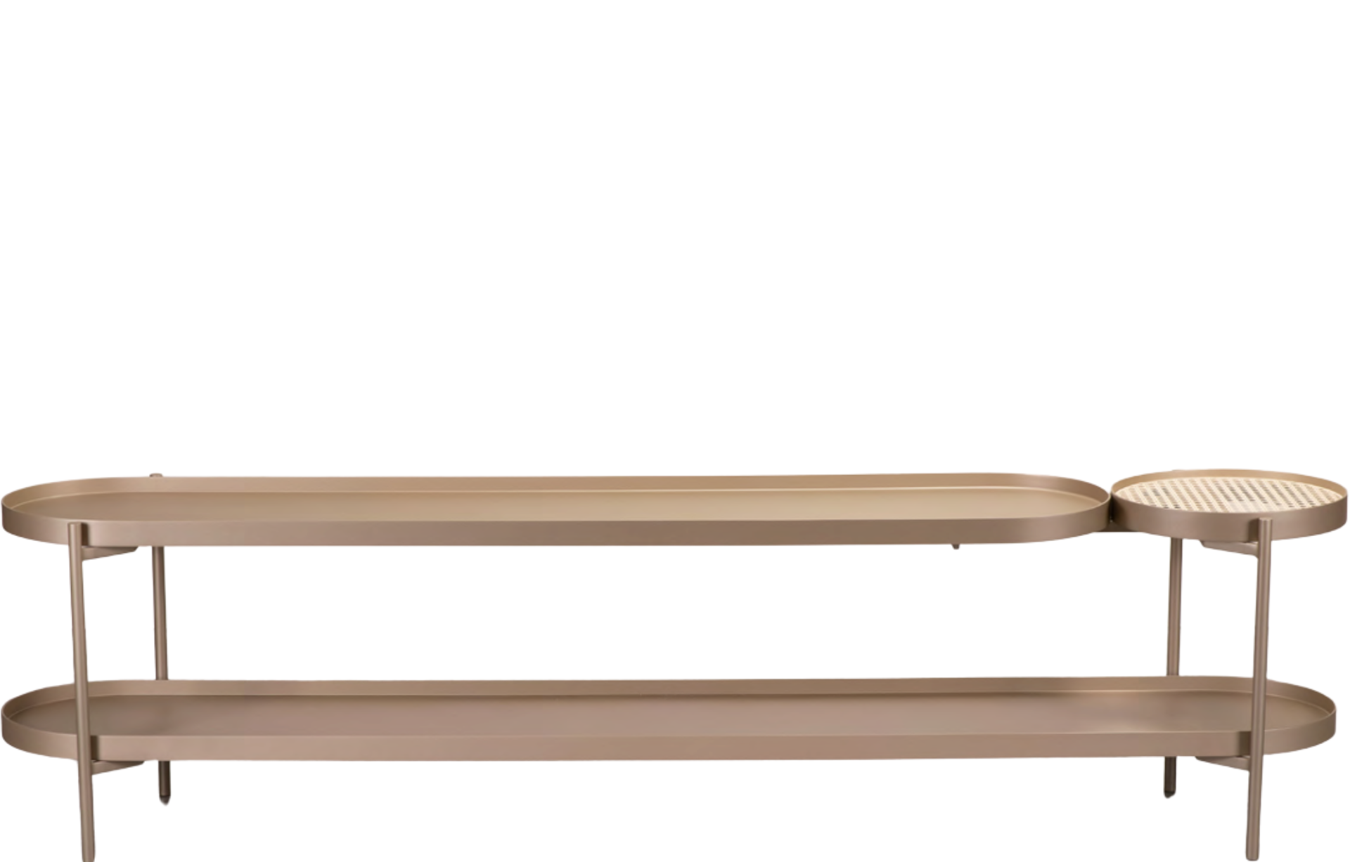 Sofa Table Carpre com opções de acabamentos em lâmina natural ou pintura laca. Estrutura em aço carbono pintado.